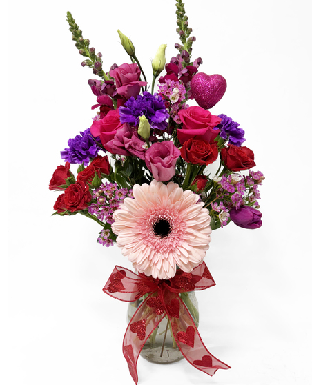 Send your crush a special bouquet of assorted fresh flowers in romantic hues. This design features roses, carnations, gerbera daisies, lisianthus, sweetheart roses, snapdragons, and more in a medium glass vase with a matching ribbon. It will be as if Cupid's arrow struck them and they will be filled with love instantly.
